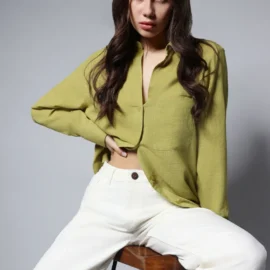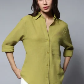 Women Green Long Sleeves Solid Oversized Casual Shirt